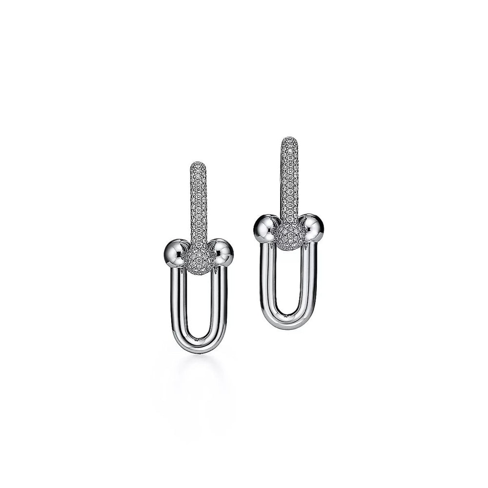 Link earring studded with cubic zirconia.